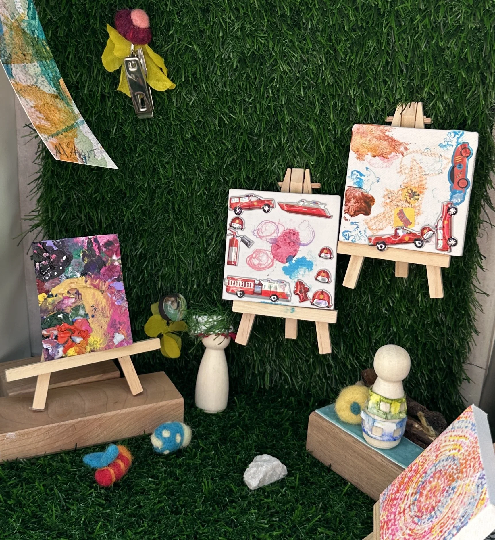Contribute creative pieces to a Free Little Art Gallery (FLAG) near you. Search the hashtags #FreeLittleArtGallery.