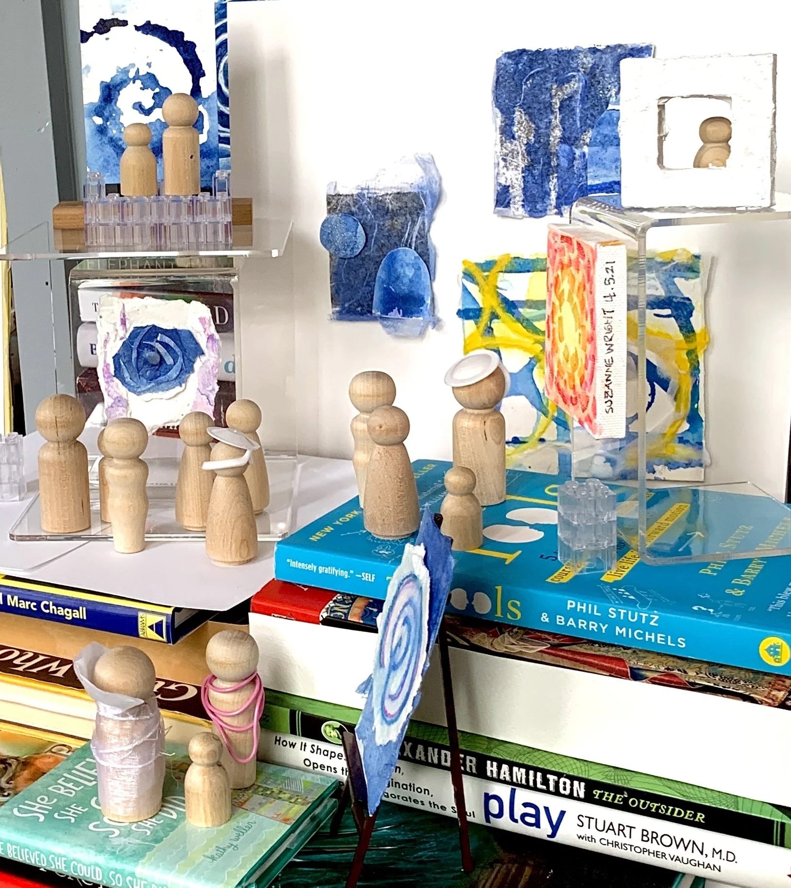 We contribute to the art-filled flow with Suzanne’s art, pieces we purchase from Etsy artisans, and of course, books from our collections.